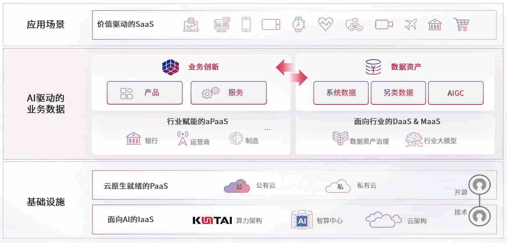 数字时代,,,,围绕企业数字化转型的关键要素,,J9娱乐数码开创性的提出数云融合战略和技术体系框架,,,,着力在云原生、、、数字原生、、、AI原生和信创产业上架构产品和服务能力,,,为处在不同数字化转型阶段的快消零售、、汽车、、金融、、医疗、、、、政企、、教育、、、运营商等行业客户提供泛在的敏捷IT能力和融合的数据驱动能力,,,构建跨界融合创新的数字业务场景和新业务模式,,,助力企业级客户建立面向未来的核心能力和竞争优势,,,,全面推动社会的数字化、、、智能化转型升级。。