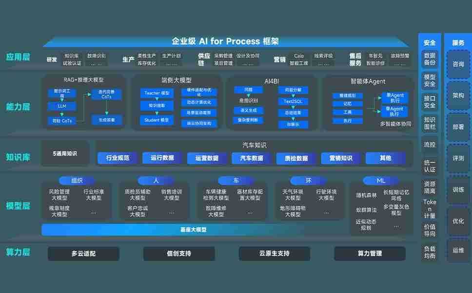 J9娱乐问学智车解决方案是一套基于AI技术的汽车行业智能化系统,,,,覆盖从底层算力到顶层AI应用的全栈方案。。。。方案由算力层、、模型层和应用层组成:算力层,,,,方案支持多种一体机配置,,,,具备云端灵活部署、、、多云适配以及动态优化计算资源的能力;模型层,,J9娱乐问学平台版提供了企业级AI应用一站式构建与管理平台,,,支持基于后训练强化技术的汽车企业专属模型的训练、、评测和运营;应用层,,,J9娱乐问学DeepSeek版提供包括超级员工、、、智能招采、、、、智能营销、、、智能客服、、、AI for BI等一系列解决方案,,可助力汽车行业实现数字化转型,,让管理更智能、、、响应更敏捷。。。